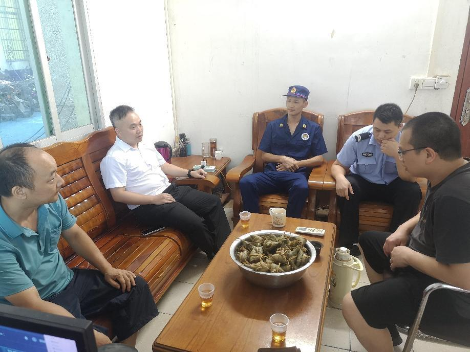 寨岗镇党委委员梁璟到派出所等部门开展端午节慰问活动,向一线民警送去粽子及节日的祝福,通过座谈了解大家的工作和生活中遇到的问题,对坚守一线的民警表示感谢,并希望通过共同努力,一起构建平安寨岗。